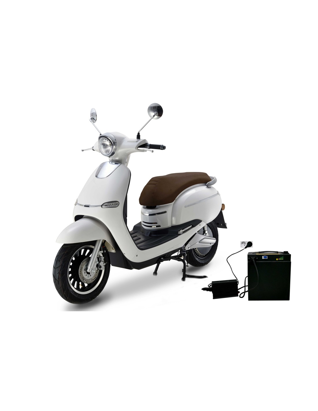 Ce scooter électrique équivalent 50 affiche une puissance de 3000 Watts. Il est disponible à partir de 14 ans. (Il faudra alors le permis Am, anciennement BSR ou le permis B. Si vous êtes né avant le 1er janvier 1988, vous êtes dispensé de tout titre de circulation.)