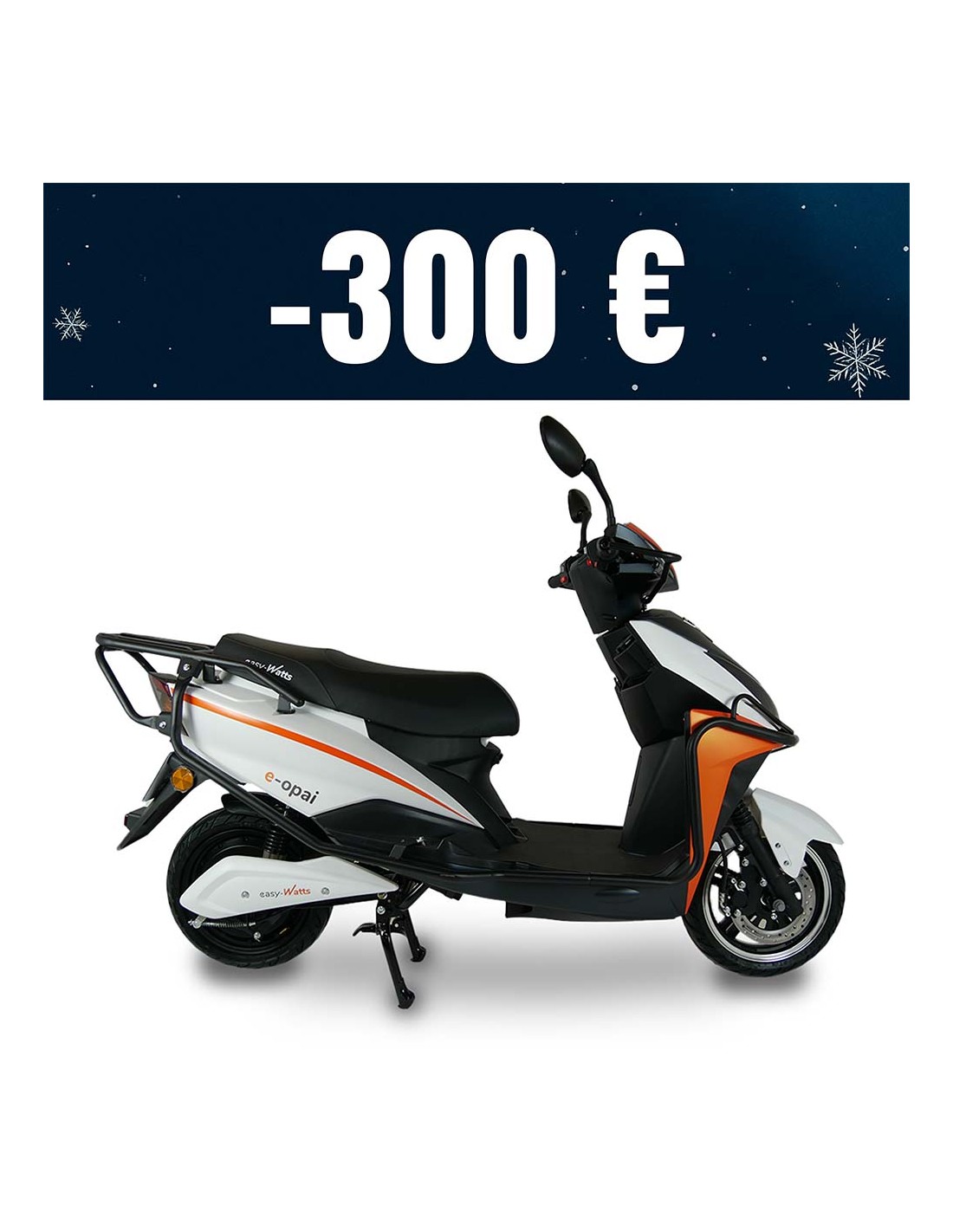 Le e-opai auto-école est un scooter électrique équivalent 50. Le e-opai auto-école est un scooter électrique compact et léger, équipé d’une ou deux batteries amovibles offrant jusqu’à 130 km d’autonomie, trois modes de conduite et une marche arrière pratique. Idéal pour la livraison ou l'apprentissage, il allie style, maniabilité et praticité.