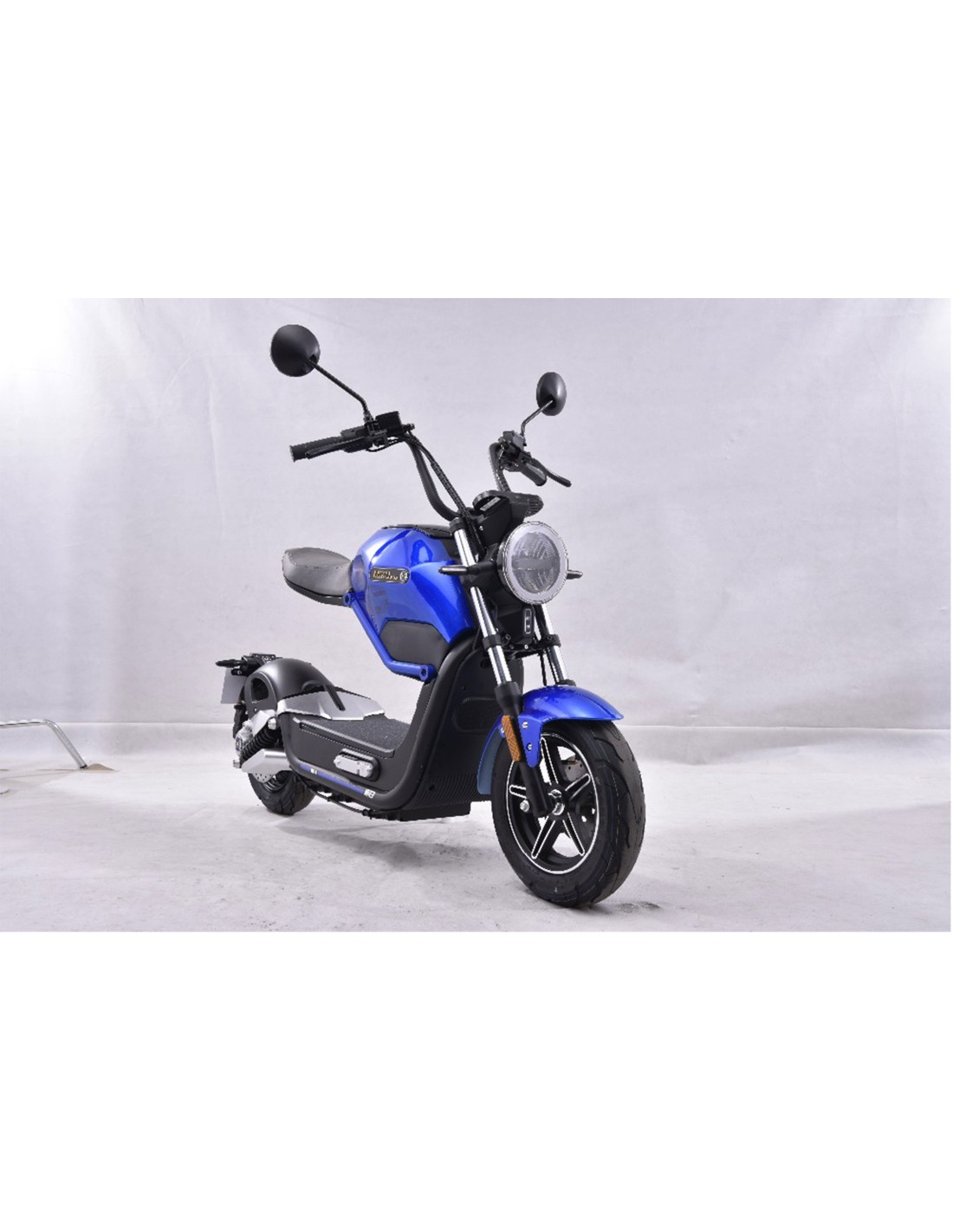 Phare avant de la moto électrique 50 cc e-miku max bleue