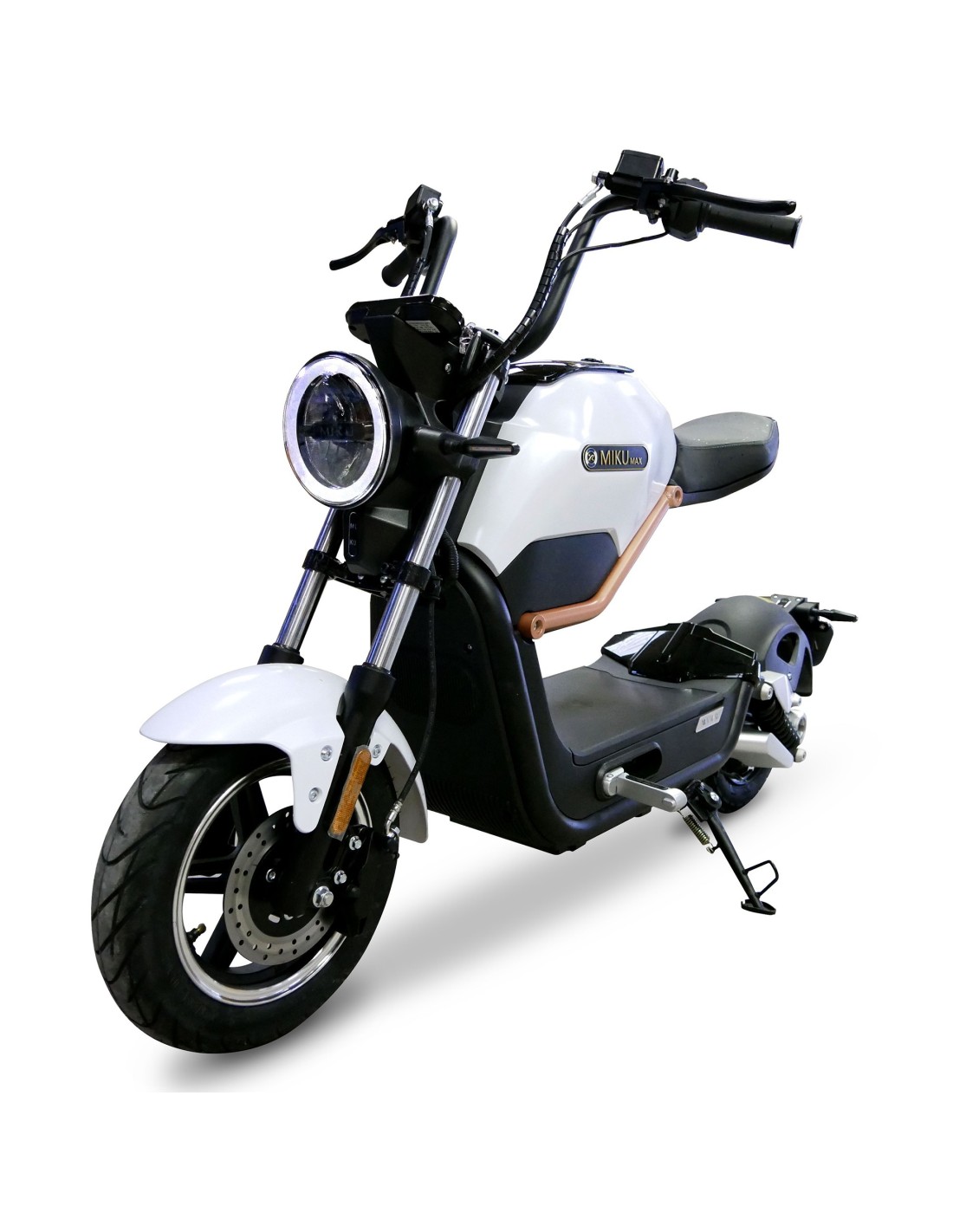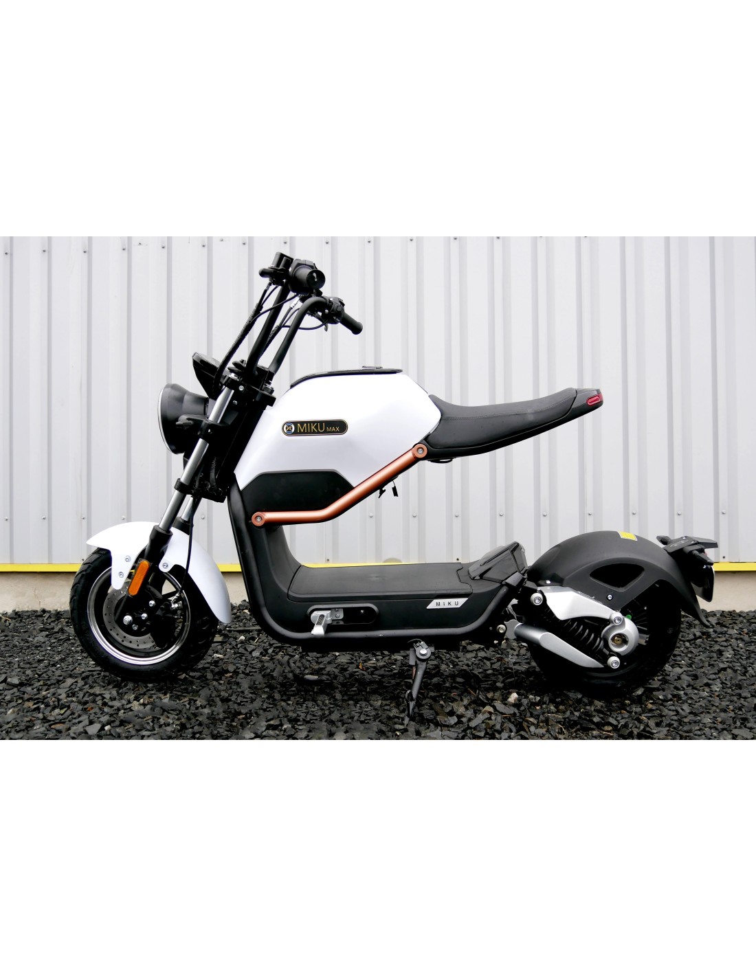 détail coloris blanc de la moto électrique miku max
