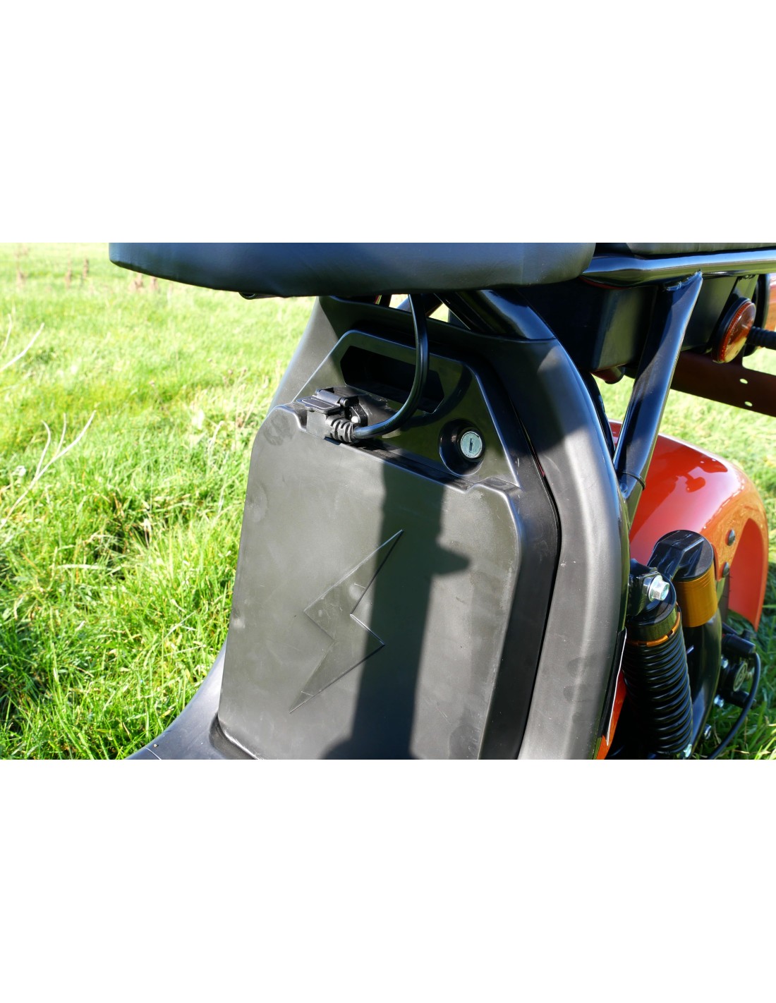 Côté batterie : Cette batterie au lithium de 60 V / 20 Ah vous permettra entre 30 et 50 km d'autonomie !
